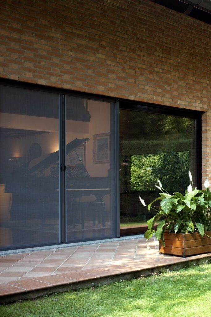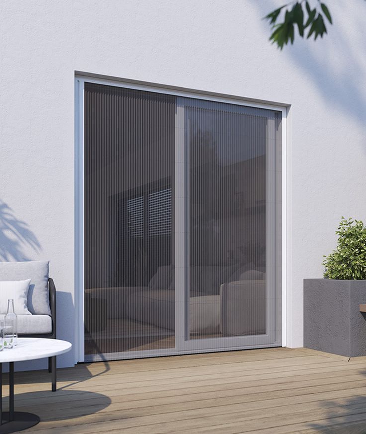 Moustiquaire plissée, très résistante et fluide à l’utilisation, idéale pour les portes-fenêtres et baies vitrées avec passages fréquents.